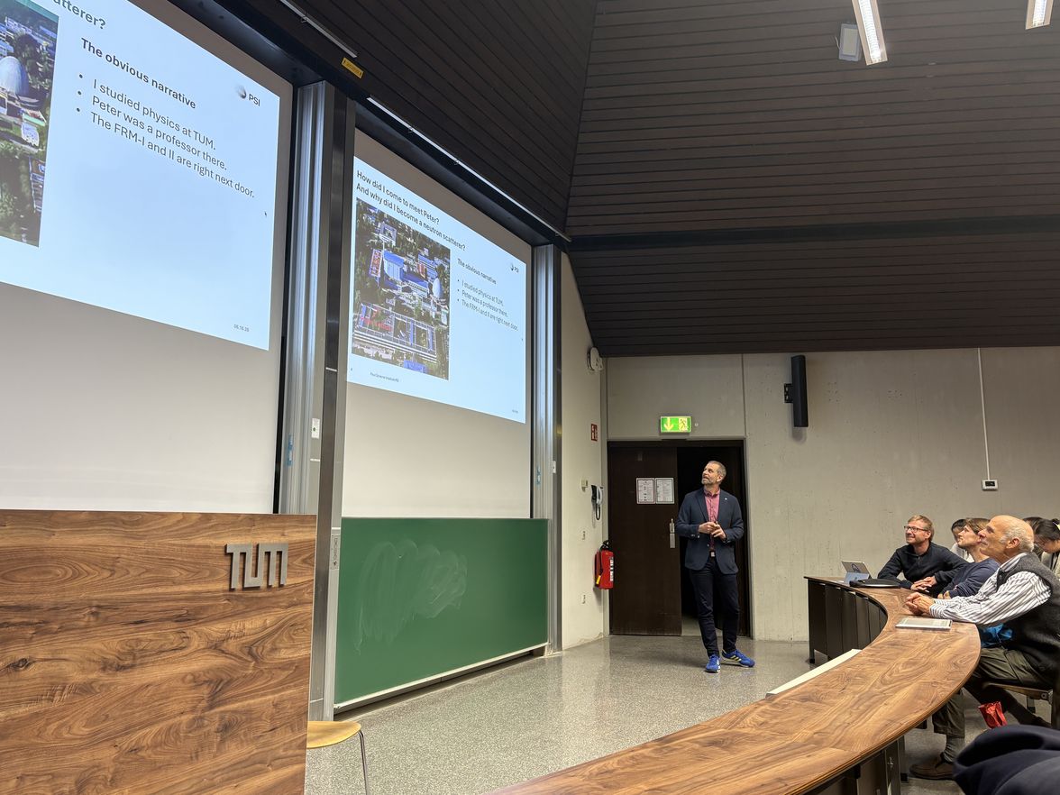 Prof. Dr. Christoph Hugenschmidt (TUM) enjoyed great freedom to conduct research with positrons, which led to his habilitation under Peter Böni. He thanked him very much for their many years of collaboration and joint supervision of doctoral students investigating the electronic structure of solids as part of a DFG Collaborative Research Center. He also organized the SLOPOS positron conference together with E21 and FRM II.
